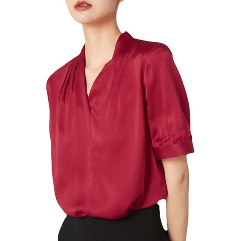 เสื้อไหมธรรมดาผู้หญิงเสื้อไหมหม่อนแข็งแขนสั้น