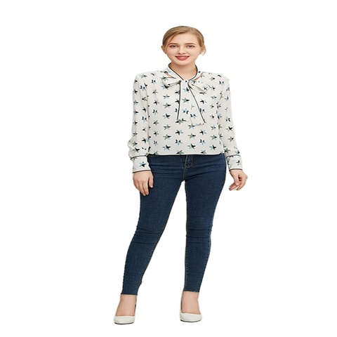 23mm 100% रेशम क्रेप डी सिलसिला कपड़े थोक रेशम शर्ट महिलाओं के फैशन शर्ट के साथ कमल आस्तीन
